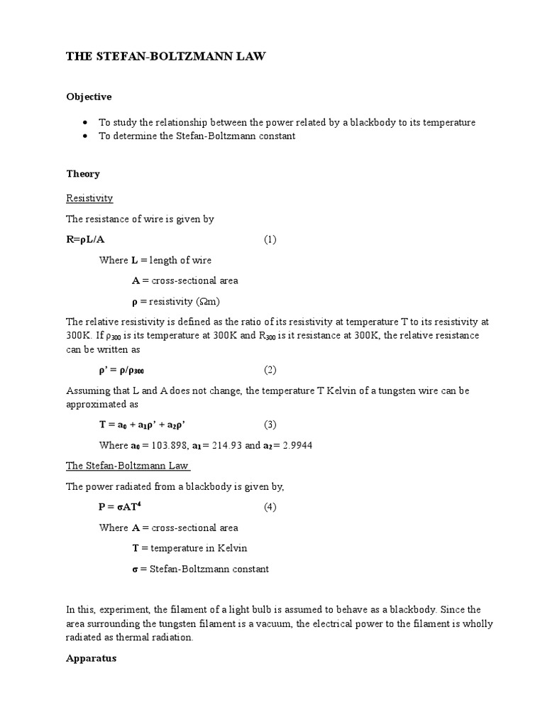 Lab Experiment The Stefan Boltzmann Law Pdf Incandescent Light Bulb Electrical Resistivity And Conductivity