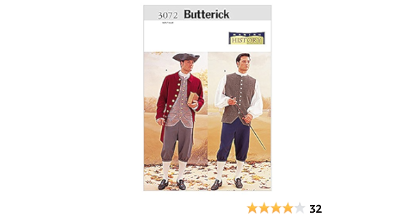 Butterick Patterns B3072 Size 32 34 36 Men S Historical Costume Knee Length Pants Balloon Sleve Shirt Vest Fitted Jacket And Tri Corner Hat White Amazon Co Uk Home Kitchen